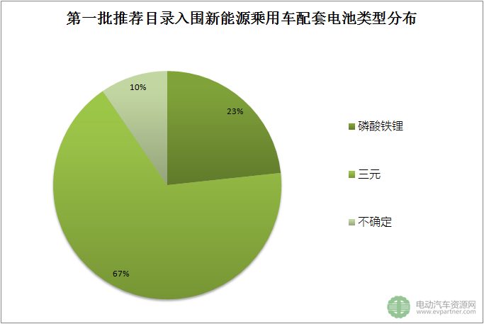 從配套動力電池的類型來看,此次推薦目錄搭載三元鋰電池的新能源乘用車至少有49款,占比67%,搭載磷酸鐵鋰的動力電池的車型有17款,占比23%。