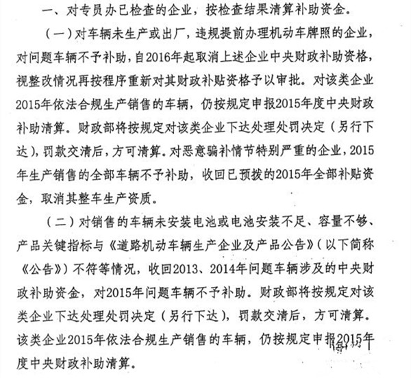 其實(shí),該份通知并非四部委對新能源汽車補(bǔ)貼清算再起波瀾,而是對2016年涉及“車輛閑置”問題的車輛進(jìn)行再次確認(rèn)。2016年9月,四部委向各省市工信部及發(fā)改委下發(fā)了《關(guān)于2015年度新能源汽車推廣應(yīng)用補(bǔ)助資金清算工作的補(bǔ)充通知》,文中表示, “近期,財政部駐各地財政監(jiān)察專員辦事處對2013-2015年新能源汽車推廣應(yīng)用補(bǔ)助資金管理使用情況進(jìn)行了專項檢查,并對以下四種情況進(jìn)行處理: