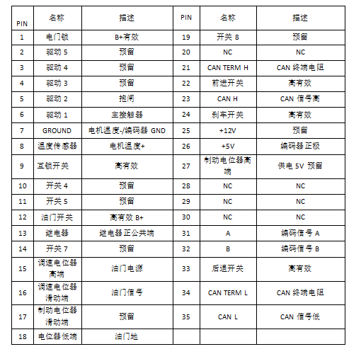 電機控制器接口定義